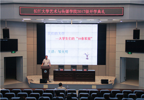 学院党委书记邹火明对2017级新生进行了入学教育。他以大学生的“十条军规”为题,提出“学习需要新方法”;告诫大家“目标明确有规划”;表达了“中国大学生素养需要提高”的呼告;告诫同学们“坚决不做低头族”。以“青青苹果慎采摘”告诫同学们要慎重对待大学生恋爱问题;提出“实践能力多锻炼”、“知心朋友不可少”、“社交能力要提高”、“参加培训拿证书”、“创业兼职长见识”等作为军规忠告同学们。