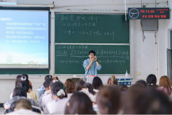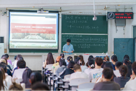 2023年11月3日上午,在长江大学西校区7教501教室,张文熙老师开展了一堂别开生面的设计美学分享课:本次课程邀请了山东大学文艺学博士王正浩老师为主讲人,主题为“美学学科构成与发展:兼谈中国设计美学发展脉络”。在张文熙老师的主持下,视觉传达设计的同学对相关话题进行了学习与探讨。