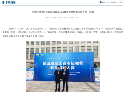 一是着力实施《关于加强青年教师队伍建设的“五大质量工程”》,从教学质量、科研促进、能力强化、博士培养、职称提升方面发力,打造一支结构合理、素质优良、能力突出的专业化、创新型青年教师队伍。二是提高青年教师教学能力水平,学院出台《15vip太阳集团教师课程教学质量同行评价实施方案》,《15vip太阳集团青年教师讲课比赛》,每月最后一周的周四下午常态化开展青年教师教学竞赛,同时邀请校内外知名专家学者开展五期知音讲堂,为教师强基赋能。2024年4月21日,许健教学团队荣获第四届湖北省高校教师教学创新大赛一等奖。